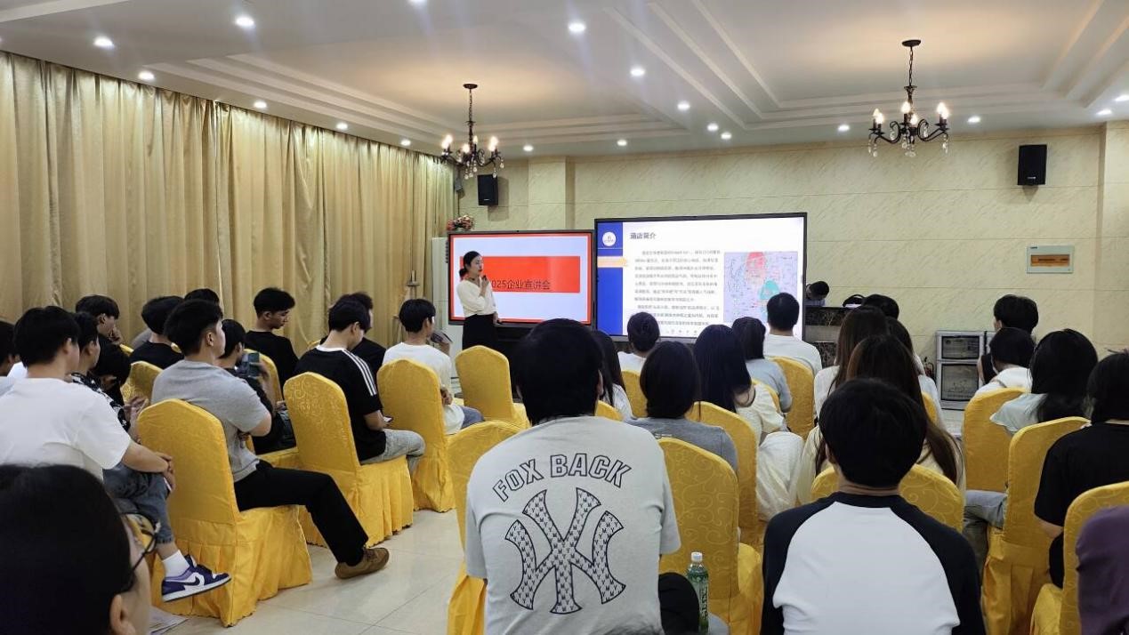 为深化校企合作,拓宽学生实习就业渠道,6月5日,人文与外国语学院特邀苏州湾恒力大酒店、苏州同里湖度假村、扬州恒力甄选酒店三家知名酒店企业进校开展实习宣讲活动。23级酒店管理与数字化运营专业全体学生及应用英语、应用日语专业部分学生参加此次活动,与企业代表面对面交流,深入了解行业需求与实习机会。