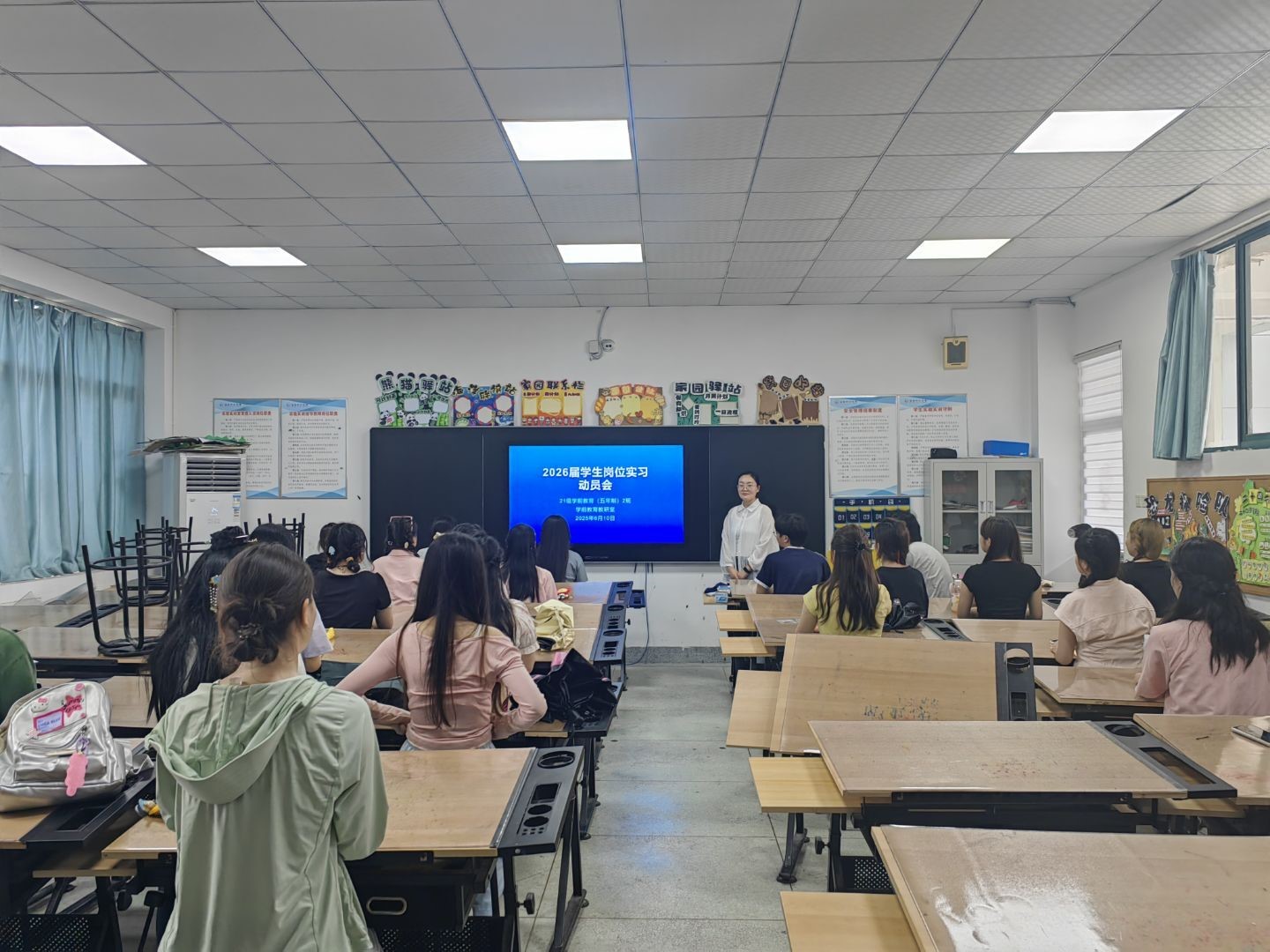 9日,学院召开2026届岗位实习总体部署会,马莹院长强调"安全是实习生命线",要求学生严守园所安全规范,辅导员与指导教师需形成"动态跟进-学业指导-应急处置"三位一体管理体系。