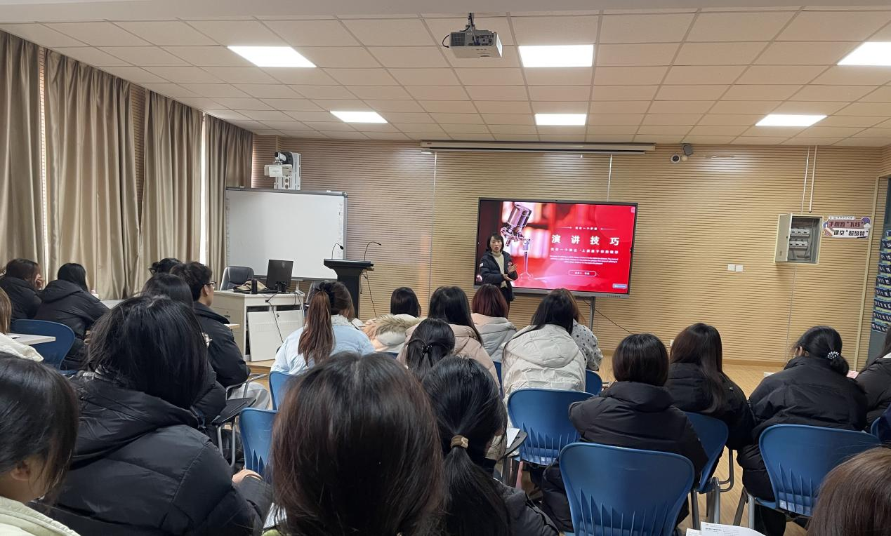 12月24日16:00—17:00,我院在实训楼413举办英语演讲专题讲座。本次讲座由吴娴老师主讲,英语专业学生及英语协会成员到场聆听。讲座聚焦各类赛事中英语演讲环节的备赛需求,围绕评分标准解读、审题方法、内容组织与语言表达技巧等方面展开,帮助同学们系统提升演讲能力与赛场表现力。
