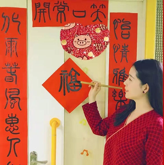 在浓浓的传统佳节氛围的衬托下,学生们发挥书法技能,挥毫泼墨,带着满满的祝福为虎年的到来写春联、贴福字,一幅幅充满了喜庆、吉祥、祝福的对联和福字,为新年送上诚意的祝福。