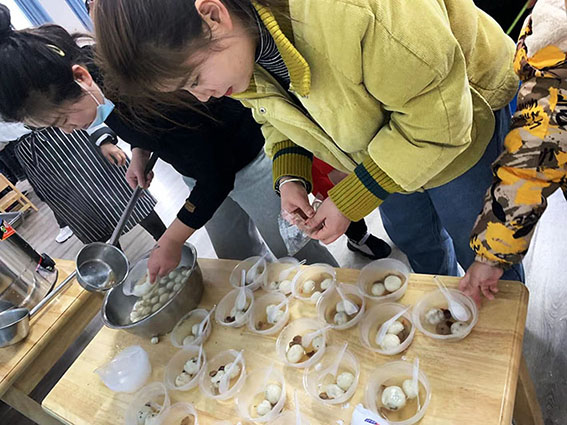 搓、捏、按、团,一块块白白的糯米面,在学生手中团成球,压成饼包上馅,做成诱人的汤圆,学生通过包汤圆、猜灯谜的方式来庆祝这个传统元宵佳节,积极参与互动,让孩子们更进一步了解我国的传统节日,体会民间文化的博大精深,在浓浓的亲情中享受节日的快乐,营造了温馨、和谐、欢乐的节日氛围,拉近家人之间的距离,增进学生对传统节日的感知,促进了传统文化的传承。
